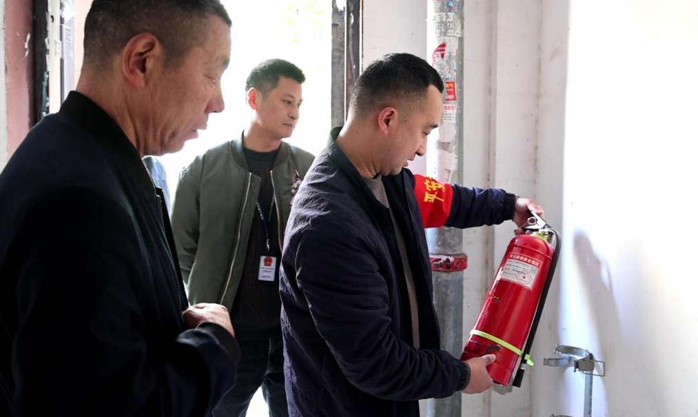 在郸城县新城街道秀水社区豫府花园小区,工作人员采取检查与宣传相结合的方式,筑牢小区居民消防安全意识。