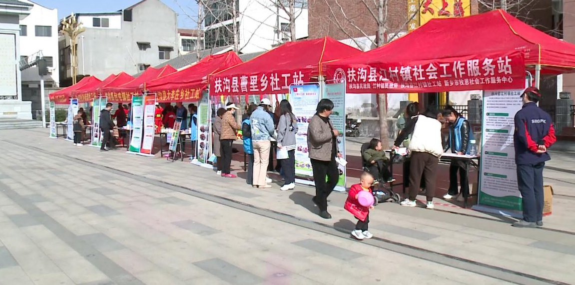 本台讯 3月19日,在第18个国际社工日到来之际,扶沟县在大程文化广场开展2024年社会工作主题宣传活动,进一步宣传社会工作专业作用,普及社会工作知识。