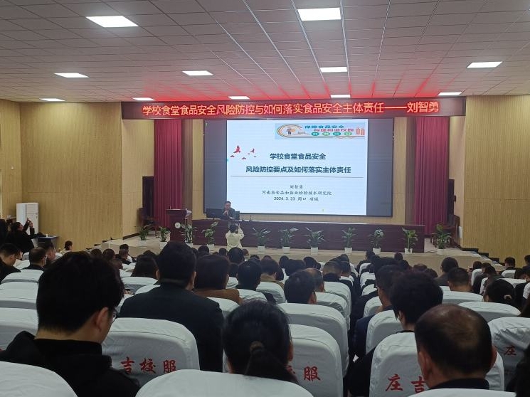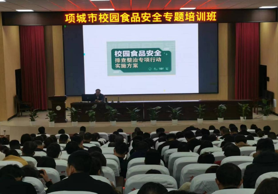本台讯 为进一步压紧压实校园食品安全“两个责任”,提高学校食品安全管理人员的法律意识和管理水平, 3月23日,项城市教体局、市场监督管理局、公安局在项城市教师培训学校会议中心举办了2024年校园食品安全管理培训会,全市各级各类学校校长、分管食品安全负责人、食品安全总监等共400余人参加培训。
