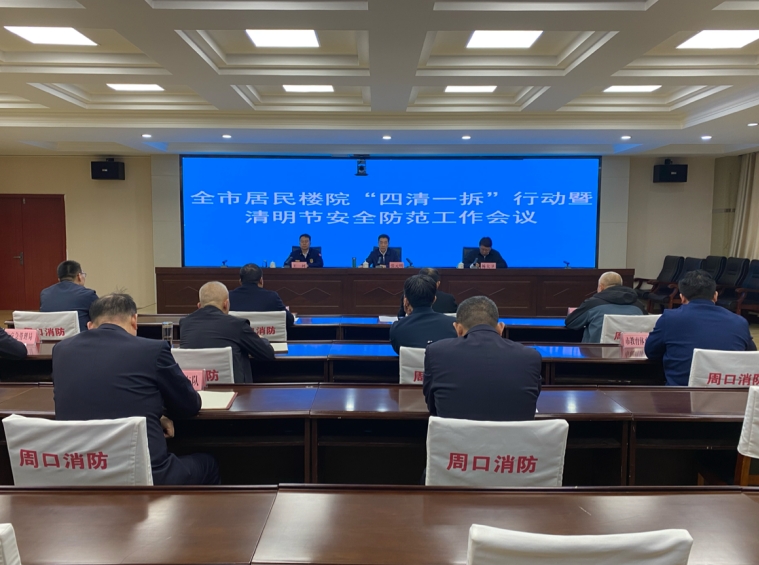 本台讯 3月24日,周口市召开居民楼院“四清一拆”行动暨清明节安全防范工作部署会。副市长、市公安局局长张元明参加会议并讲话。