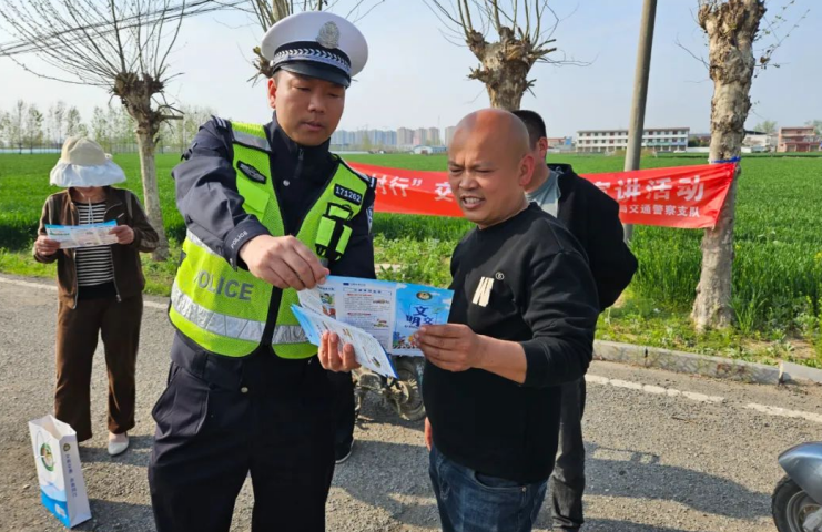 4月8日上午,周口市公安局交警支队三大队大队长史大领带领大队民辅警,走进许湾乡蒋桥村开展“美丽乡村行”交通安全宣传活动。宣传民辅警首先结合平安路东延路段即将开通的实际情况以及近期沿路村民的出行情况,对村民们进行讲解交通安全的重要性以及出入村口的注意事项,并重点针对“一老一小”做出安全提示,呼吁大家遵守交规,安全文明出行。