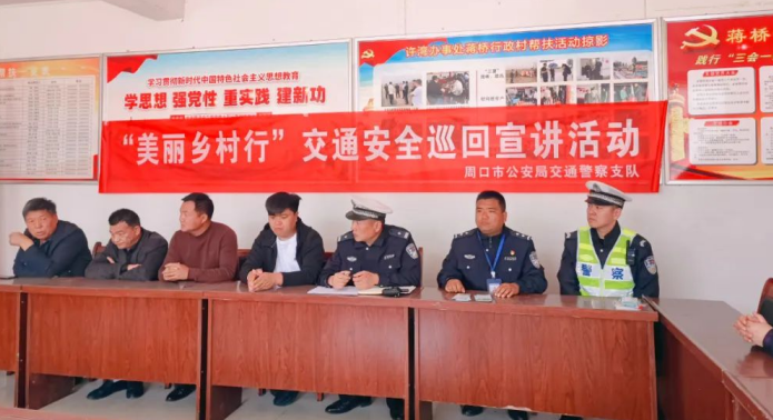 本台讯 为不断提升农村地区群众交通安全意识、法治意识、文明意识,有效预防和减少道路交通事故的发生,努力营造畅通、安全、文明、有序的农村道路交通环境。近期,周口市公安局交通警察支队积极组织各大队持续深入辖区农村开展“美丽乡村行”交通安全宣传活动。