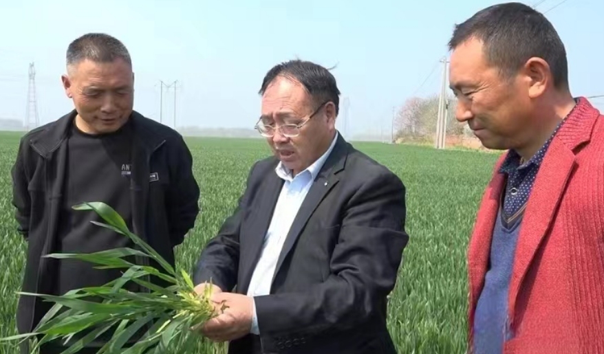 在常营镇种粮大户陈社会的麦田里,农技人员正在为村民讲解小麦管理技术,对拔节期小麦进行“把脉问诊”。