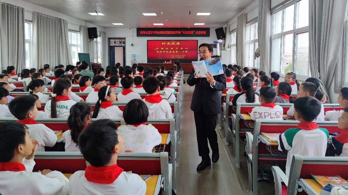 本台讯 为进一步推进书香商水建设,全面构建书香校园,营造浓厚的校园阅读氛围,4月11日,商水县委宣传部邀请知名作家鲁冰先后走进新世纪学校、县直一小开展“书香进校园·时光悦读”主题阅读活动,通过引导学生深入阅读经典拓宽其知识视野、提升个人素质,激发同学们的阅读兴趣,培养他们积极向上、勇攀高峰的人生态度。