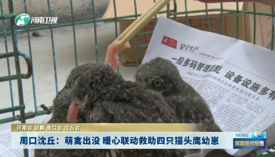 5月21日,河南卫视《河南晚间报道》栏目关注周口市沈丘县救助四只猫头鹰幼崽的相关情况。具体内容如下: