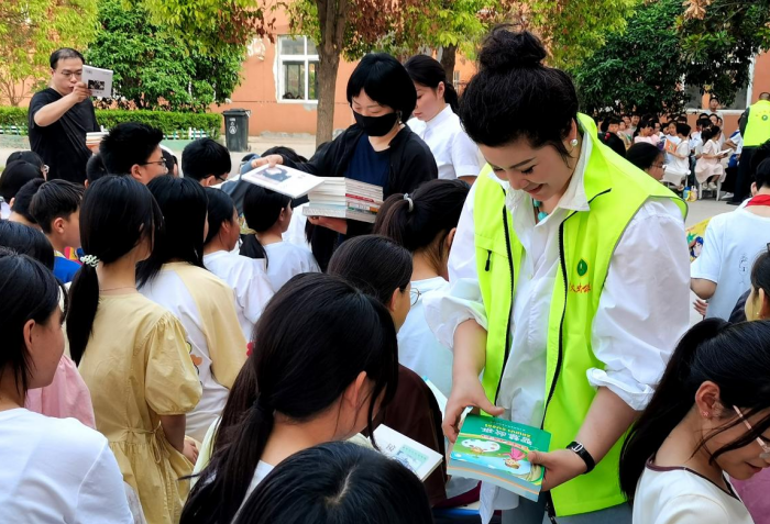 “我最喜欢读书了,尤其是自然知识类的书。”学生张桠豪领到一本植物科学读物,便立刻翻阅起来,“非常感谢叔叔、阿姨能捐书给我们,我们一定会好好读书、好好学习,用优异的成绩回报大家。”