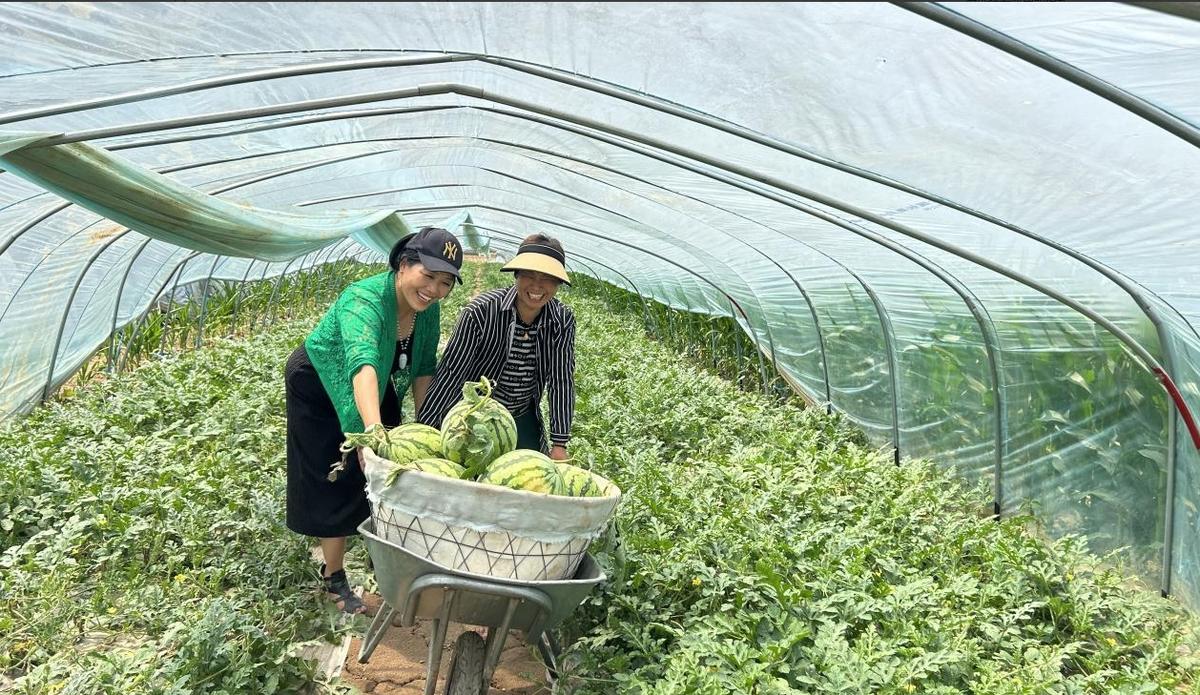 “今年,乔寨村采用‘村级集体经济+合作社+农户’产业发展模式,依托独特的土壤及气候条件因地制宜发展‘西瓜经济’,主要品种为美都、711、8424,全部使用农家肥、有机肥种植,不打农药、不用化学肥料,西瓜色泽好、品质优,绿色天然又健康、好吃。不仅提升了土地资源‘造血’功能,更有效地推动了产业的发展壮大。”村干部柳红英介绍说。