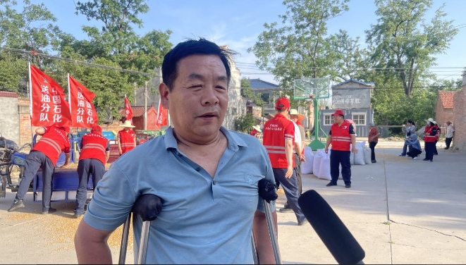 郸城县新城区罗楼村村民管松林说:“已经四五年了,他们年年帮我收麦,也没让我花一分钱,帮忙拉到家、帮我晒干,我非常感谢中石化公司对我的帮助。”