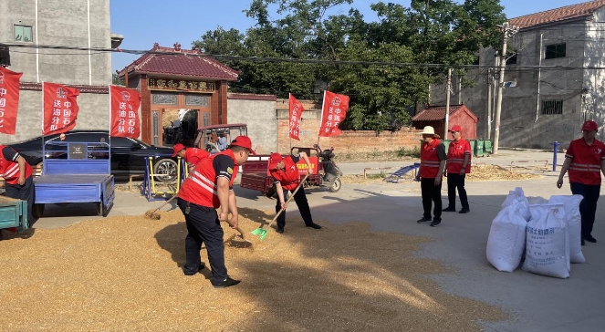 中石化周口分公司党委副书记、副总经理符志勇告诉记者:“中石化周口分公司一共成立了12支共产党员服务突击队,充分发挥党员先锋模范作用,对帮扶对象进行无偿收割,筹备爱心油免费送到困难群众家中,力所能及地为群众办实事。接下来我们会继续充分发挥党员‘一块砖’的作用,群众哪里需要我们就往哪里搬。”