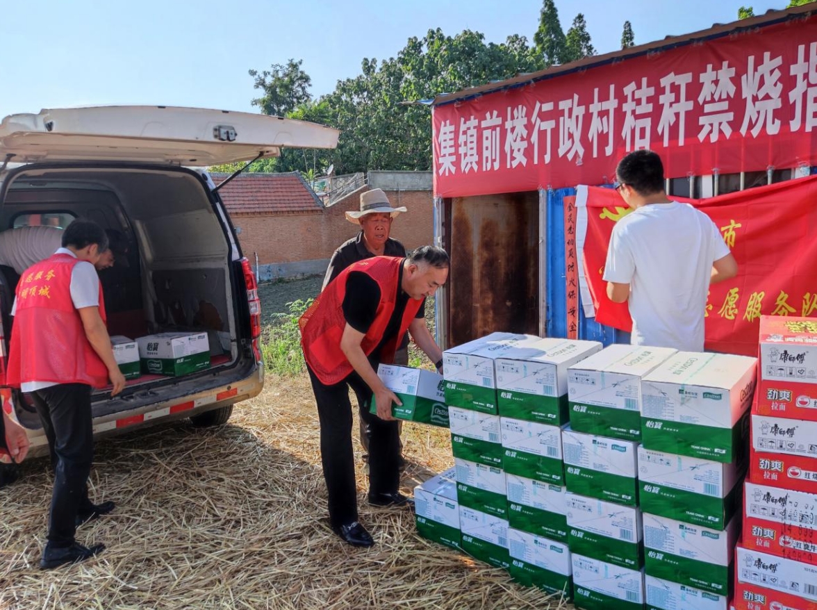本台讯 5月28日下午,在这“三夏”生产的关键时刻,项城市新华书店“党旗红”志愿服务队来到范集镇前邓楼村,开展慰问送清凉活动,为奋战在防火一线的队员们送去关怀和必备物资,助力“三夏”工作顺利进行。