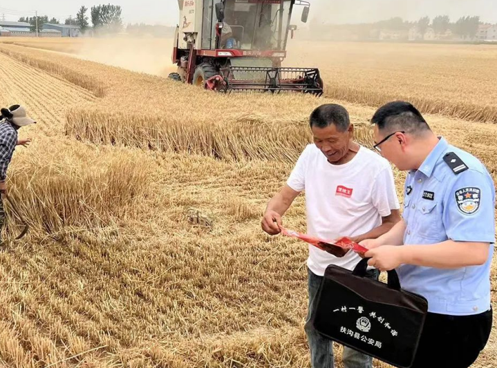 为保障辖区内小麦顺利收割,扶沟县公安局各基层派出所积极行动,组织警力深入田间地头开展安全巡查防范工作,让警徽陪伴农忙,让警灯护粮归仓。