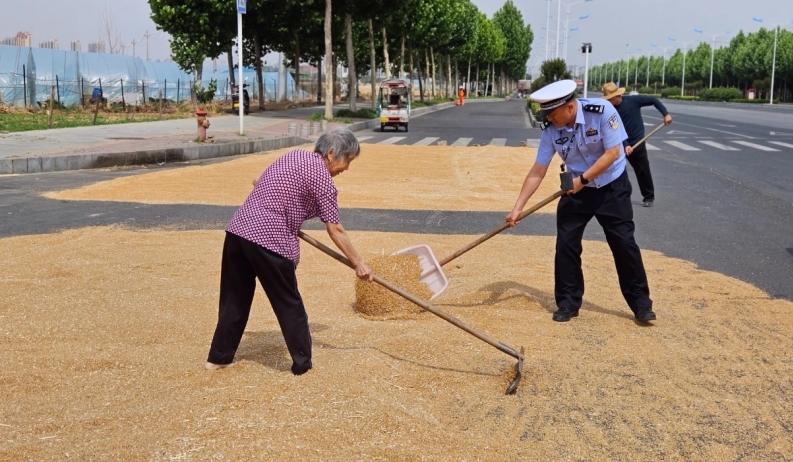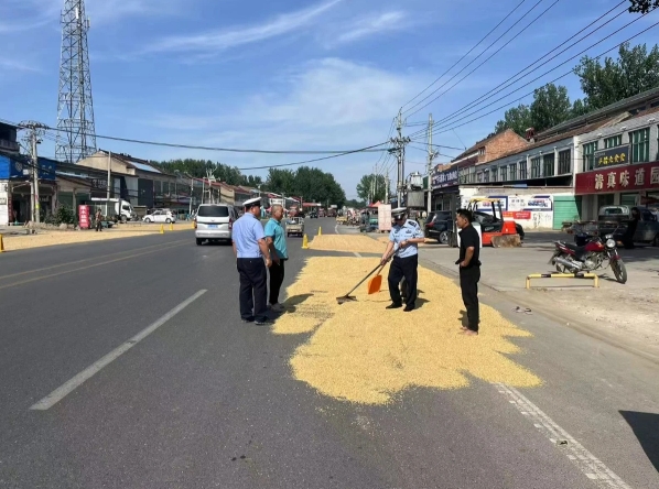 与此同时,各大队执勤民辅警加大巡逻防控力度,对正在公路上打场晒粮的群众,采取整治与宣传相结合的方式进行劝导和制止,耐心向群众讲解法律法规和公路打场晒粮存在的安全隐患,引导农户到安全场地晒粮。同时积极帮助群众及时清理路面粮食和其他农作物,得到了农民群众的理解和支持。