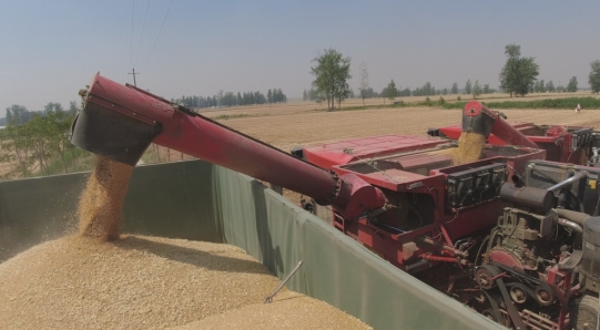 通过大型联合收割机的集中作业,不到两天的时间,秦怀俊的两千亩小麦就收割结束了。这些粮食也被第一时间拉到当地面粉企业专用的储备仓库。