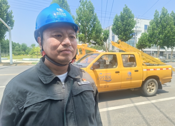 国网太康县供电公司毛庄供电所基层抢修员工王建伟说:“今天早上5点我们就接到抢修任务并迅速来到抢修现场。现在我们已连续工作了6、7个小时,虽然很热也很累,但为了能保证让老百姓早一点用上电,作为供电员工和一名党员,这都是我们应该做的。”