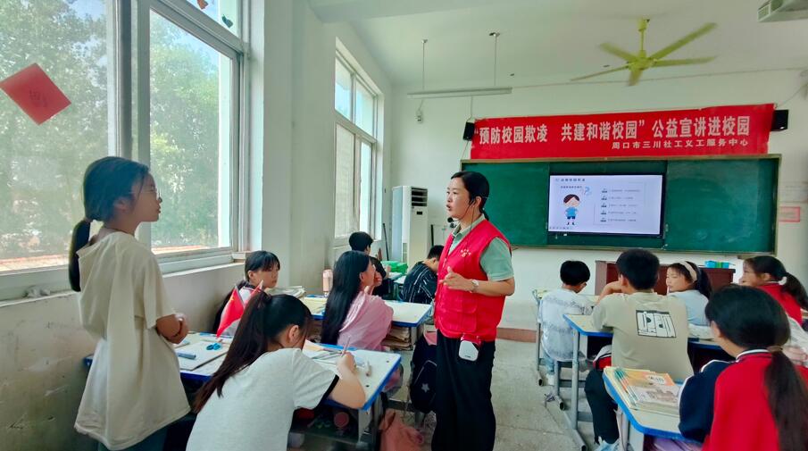 本台讯 为增强小学生的自我保护意识,营造和谐、安全的校园环境,6月17日,周口市三川社工义工服务中心组织部分义工走进周口市第十七中学小学部,开展了以“预防校园欺凌”为主题的公益宣讲活动。