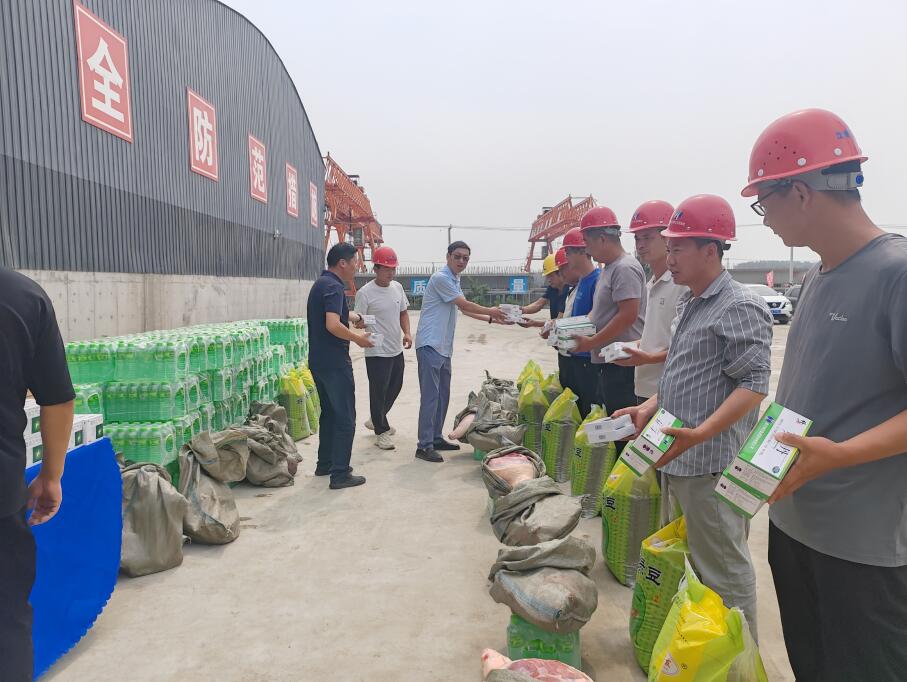 此次“送清凉”活动,项目部精心准备了充足的防暑降温物品,包括绿豆、矿泉水、藿香正气水、仁丹等。项目负责人将一份份清凉礼包送到作业人员手中,并叮嘱大家注意防暑降温,合理安排工作时间,确保身体健康。