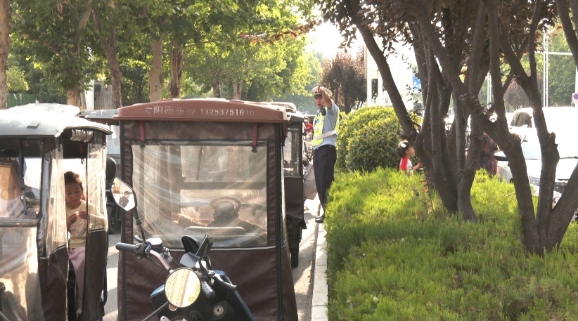 市民刘亚说:“小学和幼儿园都放学了,路上有点堵,天气很热,交警在这执勤,一会就疏通了,道路很顺畅,我们也能顺利回家,交警在大热天也很辛苦。”