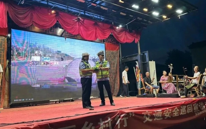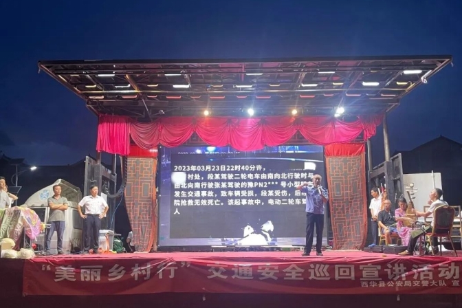本台讯 为扎实推进农村地区交通安全知识宣传,筑牢农村地区群众的交通安全意识,有效防范和降低各类交通事故的发生,营造安全、和谐、有序、畅通的交通环境,近日,西华县公安局交警大队的宣传民辅警走进大王庄乡贾庄村,借助文化部门“戏曲下乡”大舞台,向该村村民开展了一场内容丰富的“美丽乡村行”交通安全巡回宣讲活动。