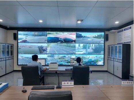 2024年6月22日,在淮阳区公安局北关派出所综合指挥室,民警吕志超、辅警尉旭冉出警过程的现场画面,通过他们随身佩戴的5G执法记录仪被实时显示在电子屏幕上。