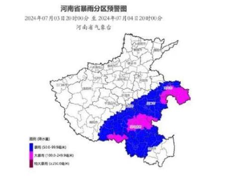 本台讯 据河南省气象台资料显示:预计7月4日,商丘、周口、驻马店、南阳东部、平顶山东南部、漯河、信阳西部和北部部分县(市、区)将出现暴雨,局地大暴雨,并伴有短时强降水(最大小时降水量 50-80 毫米)、雷暴大风(8-9 级)等强对流天气。