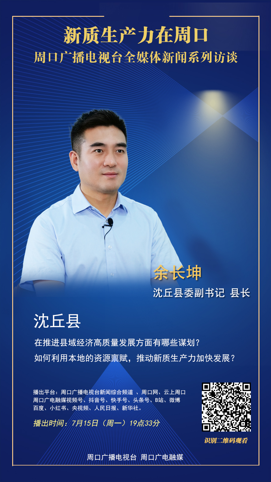 本台讯 为更好地展示周口创新发展和培育新质生产力取得的喜人成效,持续推动“工业强市”实现更高质量发展,由中共周口市委宣传部、周口市工业和信息化局、周口广播电视台联合推出的全媒体新闻系列访谈《新质生产力在周口》第三期将于7月15日(周一)19:33在周口广播电视台新闻综合频道播出,让我们一起走进沈丘县,看看他们在在推进县域经济高质量发展方面有哪些谋划。如何利用本地的资源禀赋,推动新质生产力加快发展。