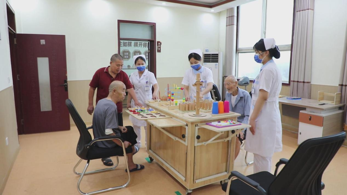 为了满足老年人的护理需求,虎岗乡卫生院利用现有资源,通过内部改扩建医养结合服务设施,建设老年健康管理中心、评估中心、老年文体活动中心、心理咨询室、书画室、图书馆等老年人活动场所,分中心内配备有集中供氧、一键呼叫和生命体征监测系统等智慧养老设施,实施医、康、养全流程医疗服务。