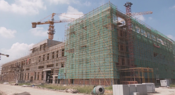 周口市红绿蓝纺织科技有限公司副总经理蒋旭野:“从三月份开始入驻绿色印染基地以来,我们各种手续办得快速完备,现在我们基本上主体结构已经完成,正在进行内部装修和各种工艺管道的安装,预计到十二月底我们能投入试生产。”