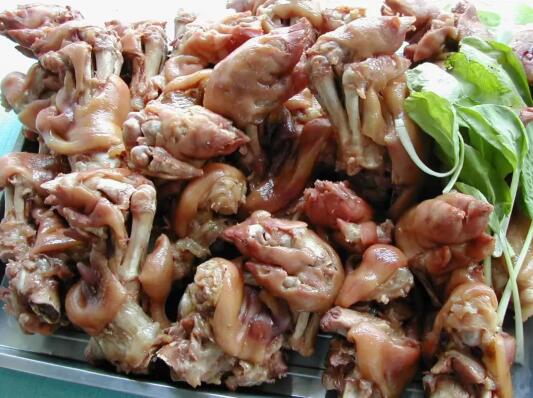 邓城叶氏猪蹄制作技艺:邓城叶氏猪蹄制作技艺为省级非物质文化遗产代表性项目。制作历经褪毛、清洁和焖煮三道工序,外观色泽鲜润,新鲜带筋,味道肉香醇厚,筋皮脆,爽口不腻。