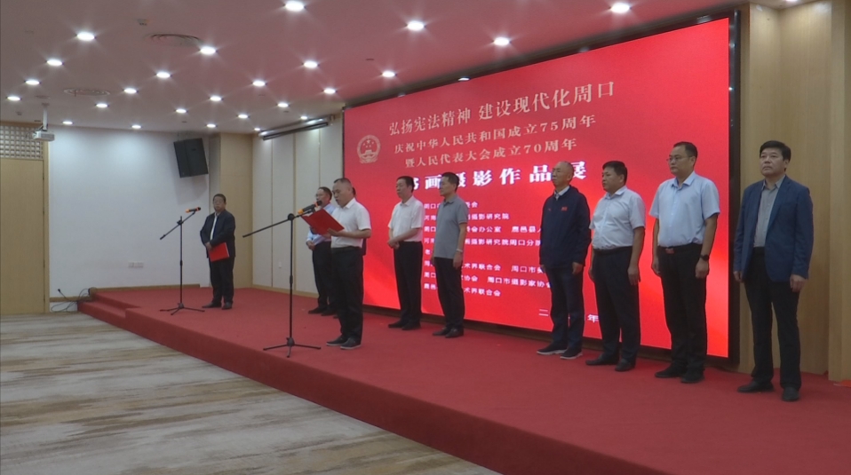 本台讯 9月24日,市人大常委会举办的“弘扬宪法精神,建设现代化周口——庆祝中华人民共和国成立75周年暨人民代表大会成立70周年”书画摄影作品展在鹿邑老子学院开幕。省人大常委会原副秘书长、一级巡视员高欣;省十四届人大常委会委员、省人大书画摄影研究院执行院长、省美协副主席沈钊昌;市人大常委会党组副书记、副主任闫立超,市人大常委会一级巡视员杨永志出席开幕式。市人大常委会秘书长张继宏主持开幕式。