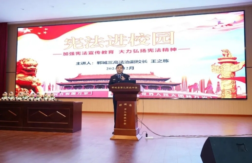 近日,周口市公安局副局长、沈丘县公安局局长王之栋以法治副校长身份到郸城三高开展道路交通安全法、宪法宣传为主题的法治教育报告活动。