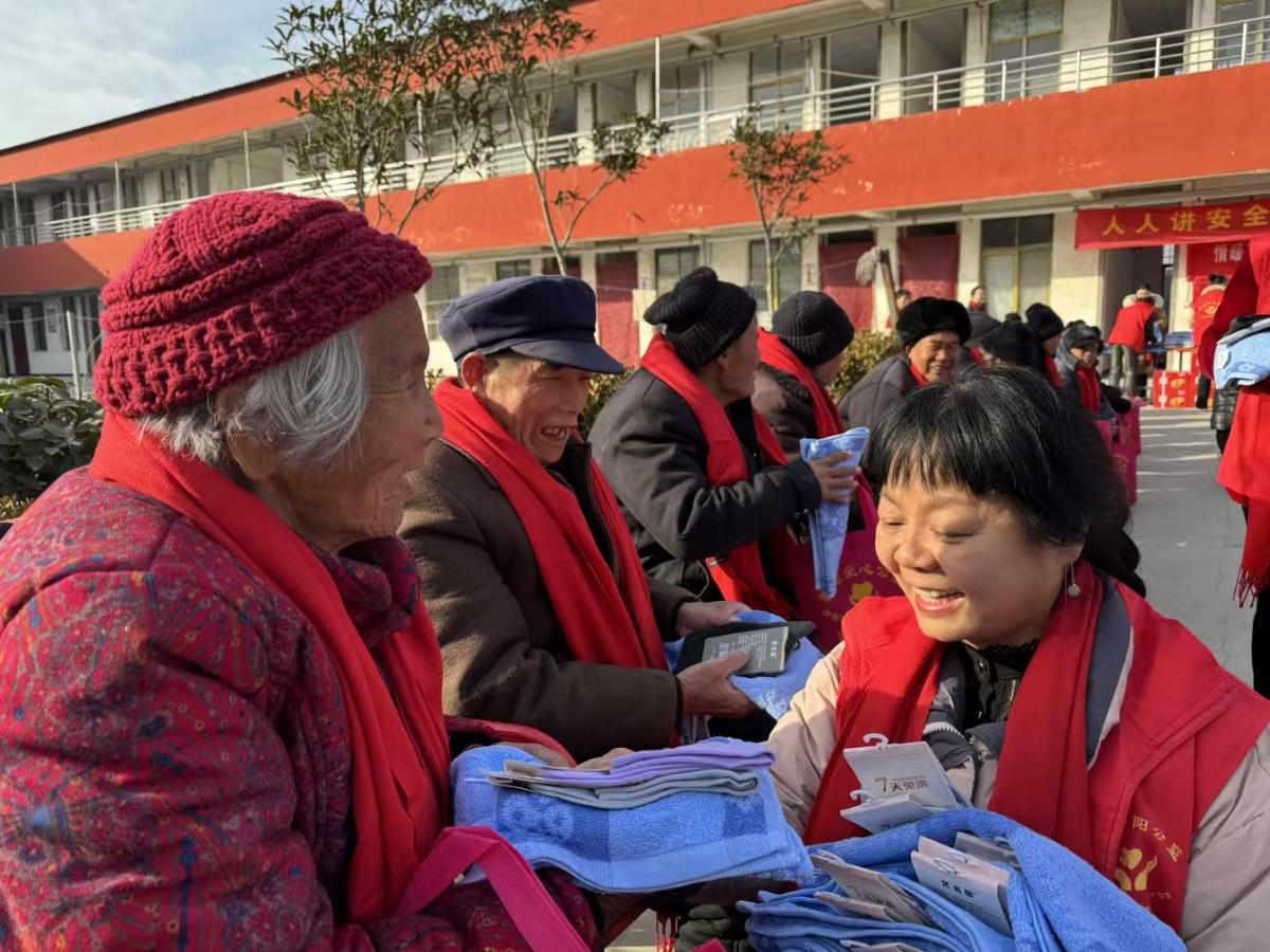 志愿者们早早乘车来到敬老院,为老人们送去了猪肉、鸡蛋、大米、蛋糕、毛巾、八宝粥等节日慰问品,现场分发给了在场的老人们,礼物虽轻但是却被寄予了对新年的美好希冀,饱含着暖暖的真情。