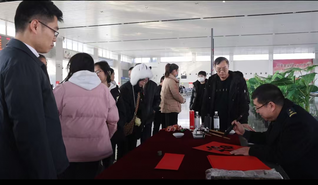 记者在周口站候车大厅里看到,这里民乐悠扬,洋溢着浓郁的文化氛围。同时还有书法协会会员及有书法特长的职工在候车大厅为旅客挥毫泼墨,书写出一副副寓意美好的春联和饱含美好祝福的“福”字,让旅客们大饱眼福,吸引了许多旅客驻足欣赏。