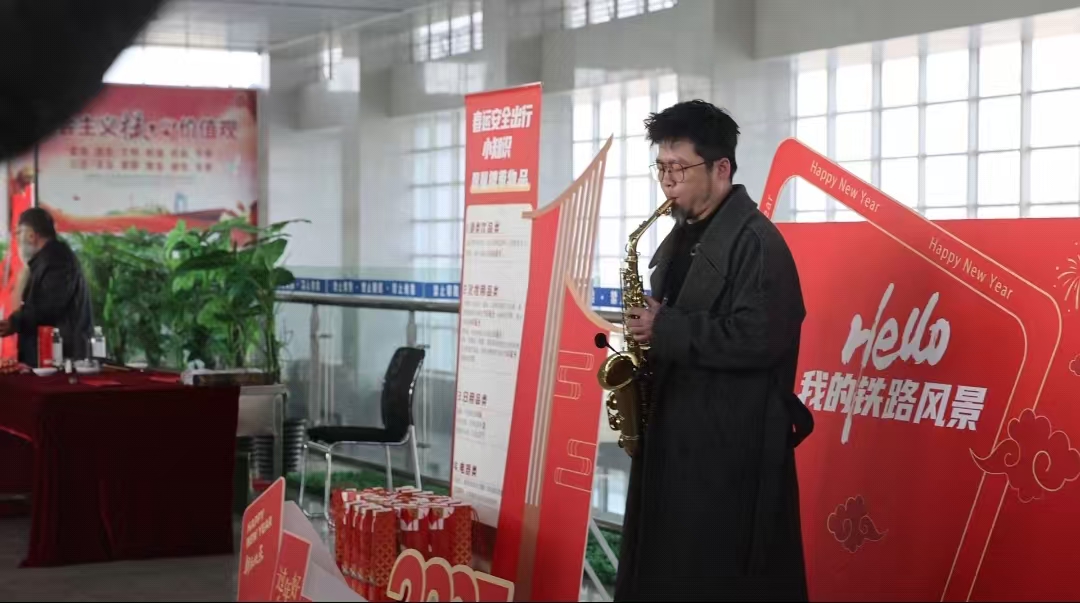此外,活动不仅有文化盛宴,还为旅客们准备了一场视听盛宴。周口市萨克斯协会人员现场倾情演绎萨克斯表演。悠扬的萨克斯旋律在站内回荡,一曲曲经典曲目,让旅客们仿佛置身于音乐的海洋,那动人的旋律与旅客们归家的心境完美契合,为春运首日的周口站增添了一份浪漫与温情,进一步提升旅客出行体验。