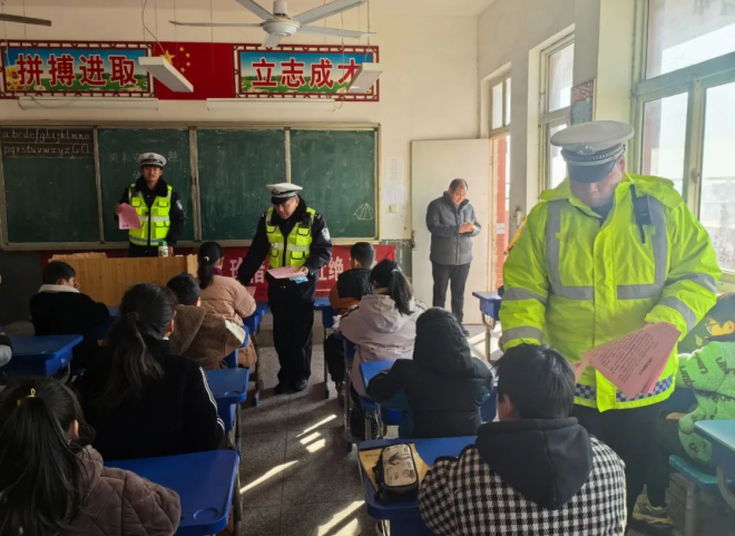 周口市公安局交警支队四大队组织民辅警深入辖区苑寨小学,开展交通安全宣传教育活动,给学生们寒假出行打好交通安全“预防针”。