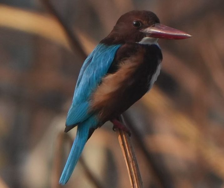 白胸翡翠属佛法僧目翠鸟科翡翠属,又称白喉翠鸟,其尾羽与翼呈亮蓝色,中部内羽片为白色,飞行时会形成一大白斑,主要以昆虫为食。其灵动的模样为公园增添了不少生机与活力。白胸翡翠通常栖息于山地、平原的河流、湖泊岸边,对生态环境的要求较为严苛。