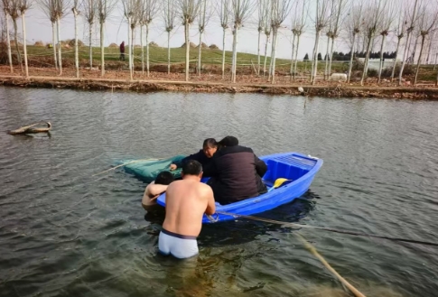 2月12日下午3点,村民何丹丹姐妹途经村东坑塘时,突然听到急促的呼救声。只见一辆电动三轮车倒栽在水中,车顶趴着浑身湿透的樊秀英老人,车内还困着不断呛水的陈秀荣老人。何丹丹立即拨打求救电话,村支书谭广云、村干部吕银涛接到消息后,仅用3分钟就带着救援队伍赶到现场。