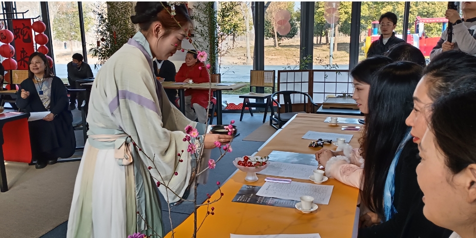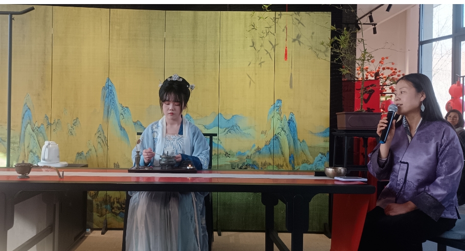 活动现场,古韵悠扬,以茶、花、画、果、乐为代表的六雅开场,其间老师们焚香、点茶、插花、挂画的展演与分享无不体现着宋代文人雅士的生活美学。活动中,非遗项目代表性传承人们还现场展示了各自精湛的技艺,并与观众互动交流,让大家近距离感受非遗文化的魅力。