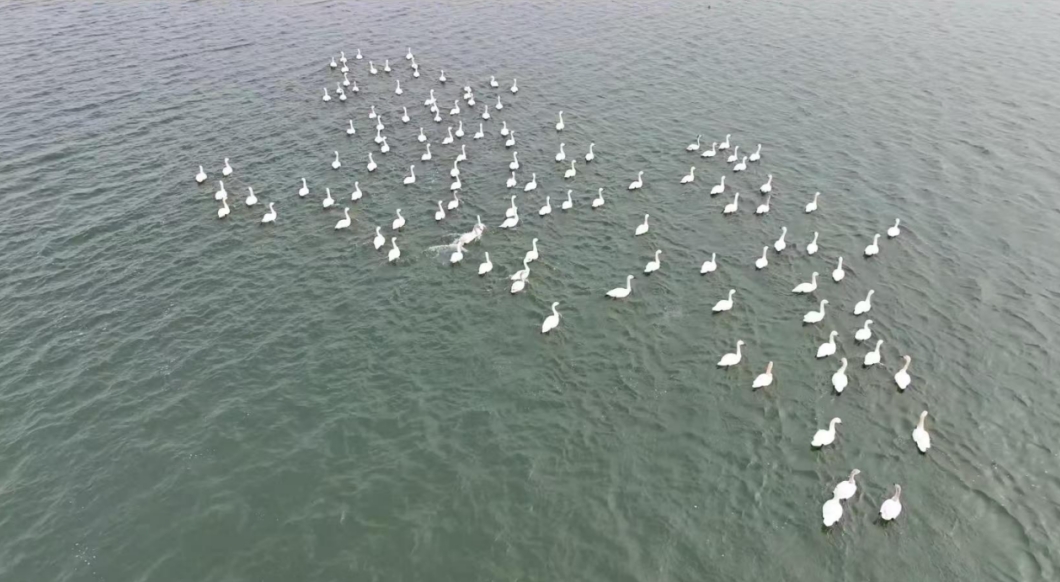 这几天,在郸城县引江济淮调蓄水库,不少回迁的白天鹅陆续在这里寻找理想的栖息地,休闲安逸地徜徉在水面,时而伸展脖颈梳理羽毛,时而引吭高歌,翩翩起舞、展翅飞翔、盘桓嬉戏、歇脚觅食,呈现出一派和谐的生态美景新画卷。