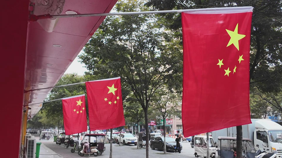 一面面国旗,承载着商户们对祖国的深情祝福,也传递着市民对美好生活的向往。