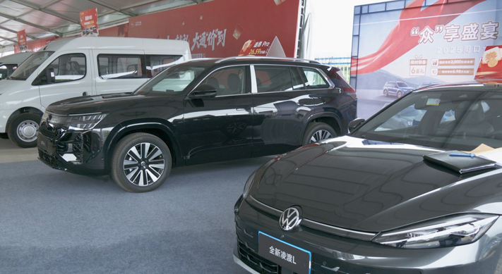 “我们这一次车展带来了五款车型,全系车型进店试驾有礼品赠送,购车有2000元现金红包赠送,个别车型有油卡赠送。相应的现在的车型都有厂补,最高可以享受两万元厂补,也有国家的补贴,最高也可以享受到两万元,部分车型除了有补贴以外,还有厂方额外赠送的多次保养。”上汽大众4S店网销经理陈鹏辉介绍。