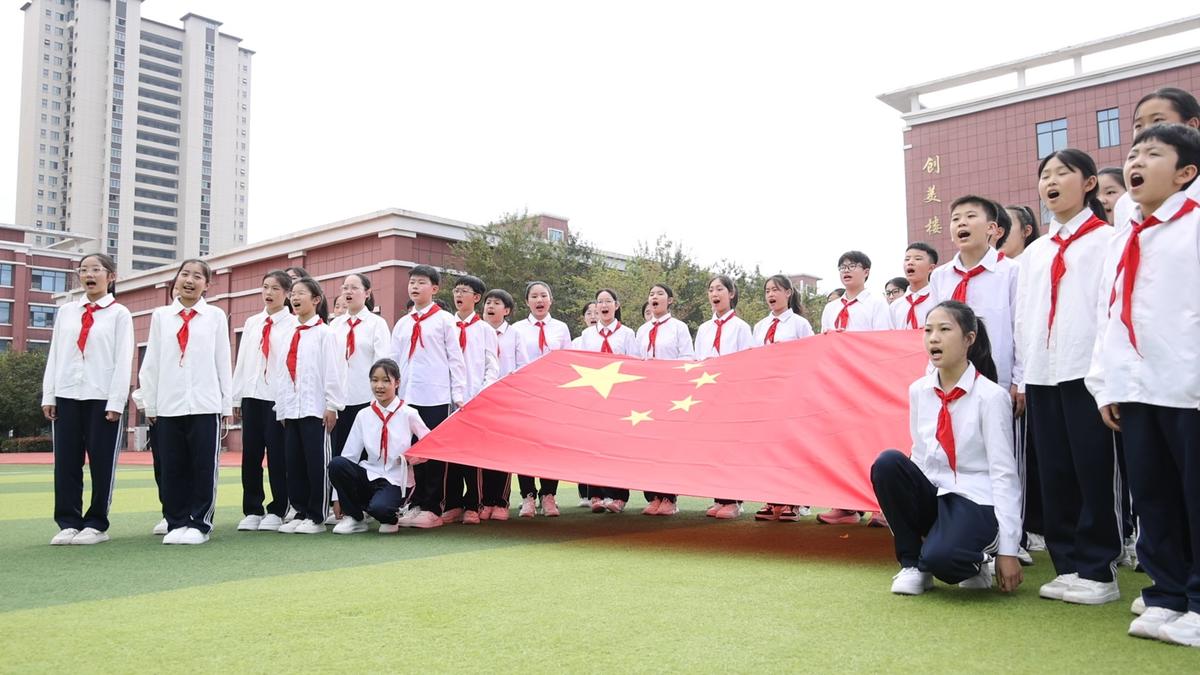 “青春快闪贺国庆”活动在项城市公园路学校开启。学生、党员教师及青年代表集结在校园,《在灿烂的阳光下》旋律响起,手持小国旗的参与者从校园各处汇聚,形成“中国红”海洋。随后《我们是共产主义接班人》《我和我的祖国》接连唱响,歌声与掌声交织,成为校园国庆活动的序曲。