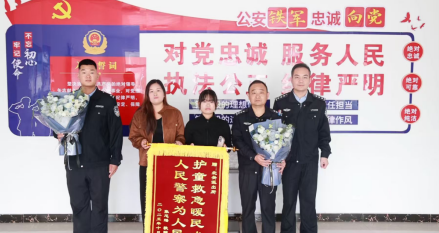 待孩子稳定后,王丽娜通过网络发布寻人信息,经多方打探,确认热心警察是来自郸城县公安局北关派出所的辅警张向阳和胡方,为表达感谢,王丽娜将一面写有“护童救急暖民心 人民警察为人民”的锦旗送到了他们二人手中。