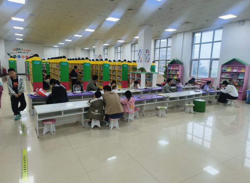 在少儿阅览室内,同样是一派温馨的景象。不少家长带着孩子前来“充电”,孩子们在父母的陪伴下,手捧书卷,在舒适的环境里尽情遨游书海,认真阅读学习。