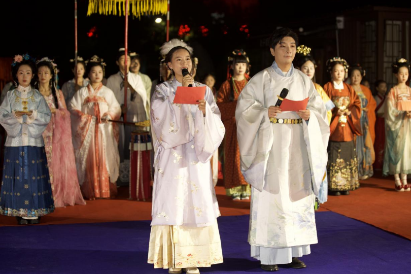 活动现场,乐声悠扬中,“乐舞献祭”的舞姿翩跹灵动,“上香礼”的敬虔肃穆、“三献礼”的层次井然、“望燎礼”的意蕴深远,一步步将国家非物质文化遗产“老子祭典”的厚重底蕴与传统“中秋祭月”的民俗意趣完美融合。参与者遵循古礼流程,每一个动作、每一句祝祷都承载着对传统文化的敬畏,也让线上线下观众沉浸式感受到中华礼仪文化的独特魅力。