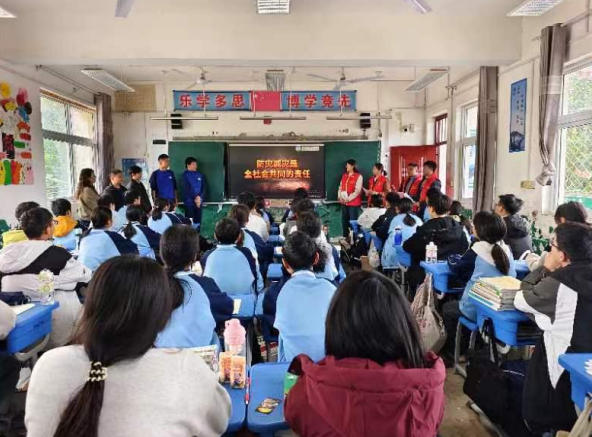 在曹里乡中学,一场“趣味化+场景化”的安全体验课让防灾应急知识活了起来。生动的卡通宣传片、模拟警报下的紧急疏散演练、消防员手把手传授的灭火器实操课堂……同学们在沉浸式体验中快速掌握应对火灾、洪涝等灾害的关键技能。