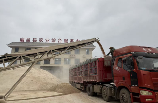 近日,记者来到位于鹿邑县玄武镇南头的鹿邑县农业综合服务中心内看到,两座500吨的烘干塔正在昼夜不停地工作,载满玉米的大车小车正有序驶进厂内的固定场地进行过磅、推卸、烘干、装载。来自鹿邑县邱集乡的农户王新建对记者说:“我种了300多亩地,收的粮食基本上都卖这里了,这个地方有烘干塔,今年天气比较恶劣,存储的粮食比较湿,来到这心里比较踏实,比较安心。”
