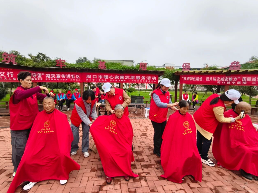 活动现场设置了义诊区、义剪区与国际减灾日宣传区,三大区域同步推进,服务与宣传并行,吸引了众多社区居民驻足参与。在义诊区,医护人员耐心细致地为居民提供健康检查服务,包括测量血压、血糖,进行常见病问诊与健康咨询等。同时,医护人员还结合国际减灾日主题,向居民普及了灾害发生时的急救知识,如心肺复苏操作要点、外伤简易处理方法等,让居民在关注自身健康的同时,掌握实用的灾害应急技能;在义剪区,志愿者们凭借娴熟的理发技艺,为社区居民提供免费理发服务;在国际减灾日宣传区,志愿者们通过悬挂主题横幅、摆放宣传展板、发放宣传手册等形式,向居民详细讲解防灾减灾知识。