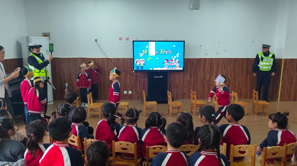 活动中,民警针对学龄前儿童特点,运用生动PPT课件和童趣语言,讲解“红灯停、绿灯行”等基本交通规则及安全头盔佩戴要领。单警装备展示让孩子们近距离了解交警工作,情景互动环节更让孩子们化身“小司机”“小骑手”,在模拟红绿灯场景中实践通行规则,使交通安全知识在欢乐中内化于心。