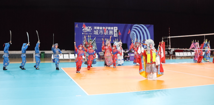比赛间隙,一场融合周口文化特色的文艺演出惊艳全场。开场节目《龙腾盛世》中,20名舞龙者与排球运动员互动,将传统民俗与体育精神完美结合;太极表演《周口力量》刚柔并济,展现中原文化的深厚底蕴;戏曲《穆桂英挂帅》选段则以铿锵唱腔点燃观众热情。场外,周口泥泥狗、朱家剪纸等非遗项目让观众在欣赏精彩赛事的同时,领略到了周口深厚的文化底蕴。