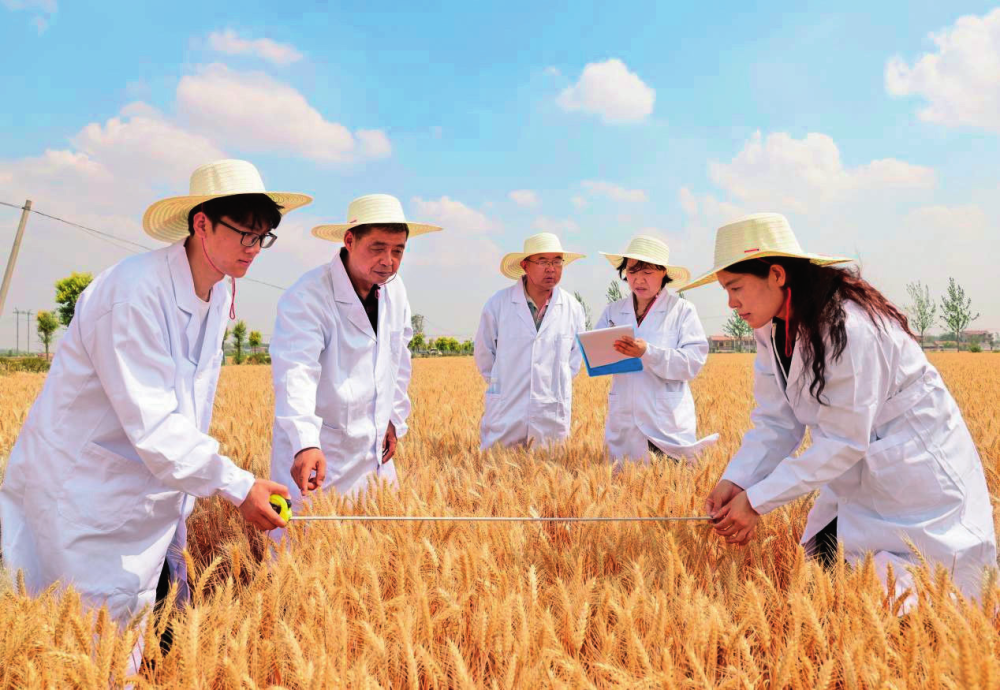 河南省农科院小麦研究所科 研人员在周口国家农高区科研试 验田中对优良品种小麦进行测产 受访者供图
